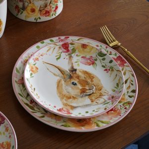 European Flower Cute Rabbit Pastoral Dessert Plate