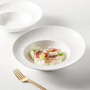 European Style Embossed Ceramic Pure White Steak Plate