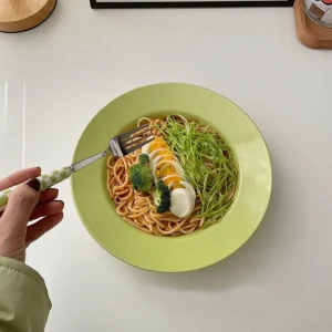 Ceramic Soup Bowl Hand Painted 10 Inches, Green