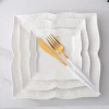 This set includes three different sizes, 6 inches, 8 inches, and 10 inches, allowing you to serve a variety of dishes at your next gathering or event. The plates are made from high-quality porcelain, which is known for its durability and strength. The white color and embossed design give the plates a classic and elegant look, making them a perfect addition to any table setting. The square shape adds a modern and contemporary touch, making them ideal for both casual and formal occasions. These plates are perfect for serving appetizers, entrees, and desserts at weddings, buffets, or any special event. Their sleek and timeless design makes them a perfect gift for newlyweds or for anyone who loves to entertain. Upgrade your dining experience with our 3-piece set of Plain White Embossed Porcelain Kitchen Plates today.