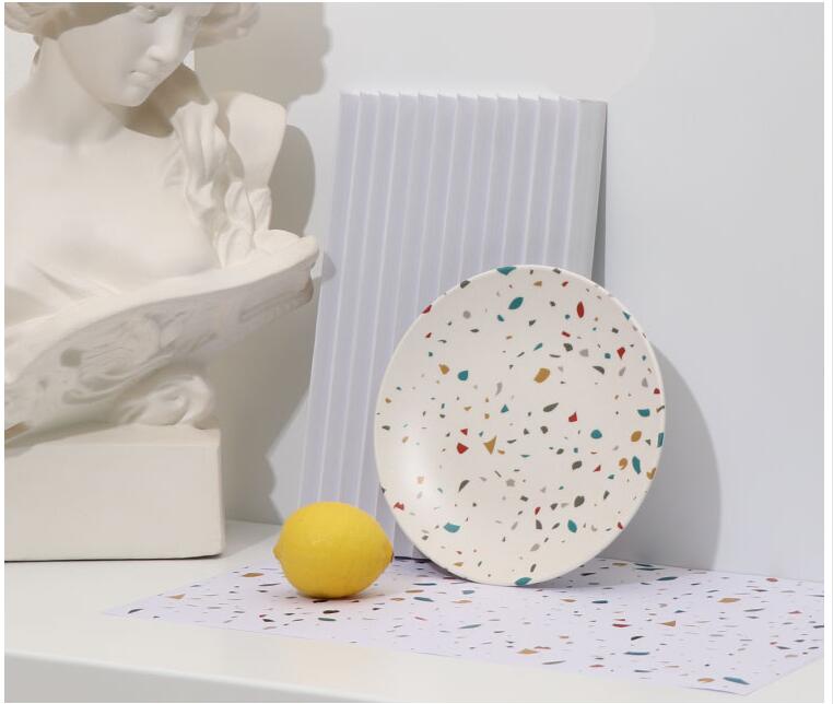 4PCS/Set Nordic Style Hand-Painted Bamboo Fiber Plate Kitchen Supplies
