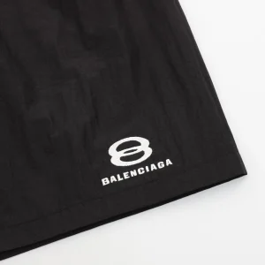 Minimal yet iconic, these black nylon shorts from BLCG feature the signature double B emblem and BLCG logo printed near the hem. Designed with an elastic waistband and practical side pockets, the lightweight crinkled texture gives it a cool, laid-back edge. Perfect for everyday wear or pairing with oversized streetwear tops, these shorts bring subtle branding with maximum style.
