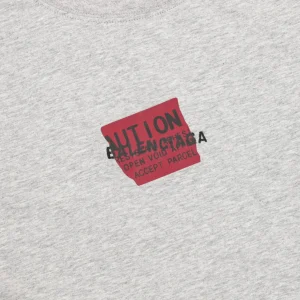 This men’s heather grey T-shirt from BLCG offers a clean yet edgy design with a medium fit silhouette. A subtle front chest print keeps it minimal, while the back features a bold taped-style “BLCG” logo over a red bar, adding a modern graphic punch. Crafted from soft cotton with a crew neck and short sleeves, it delivers versatile comfort for everyday wear while staying unmistakably Balenciaga.