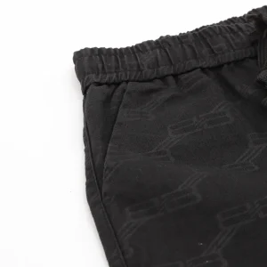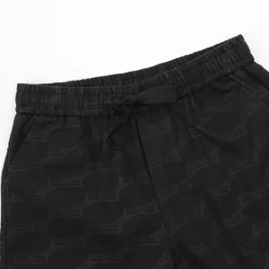 BLCG delivers a subtle twist on streetwear staples with these black jacquard shorts. The all-over BB monogram pattern blends seamlessly into the fabric, giving it a textured and refined look. Designed with a drawstring waist and side pockets for function, plus a back patch pocket with a small woven tag, this pair balances comfort and luxury in everyday style.