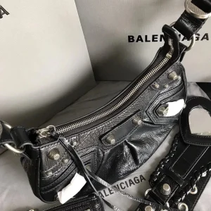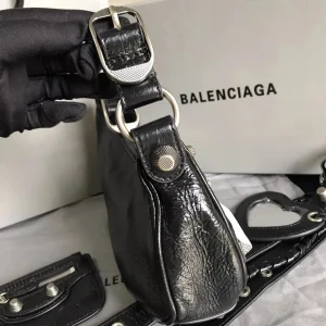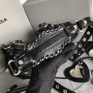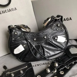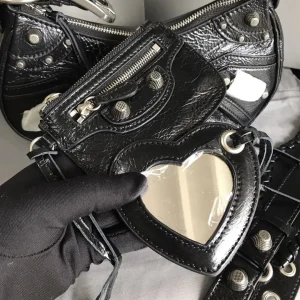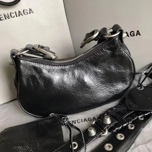 The BLCG Le Cagole Shoulder Bag in black is the perfect fusion of edgy appeal and refined sophistication. Featuring unique aged calfskin and iconic silver hardware details, this bag is more than just an accessory, it’s a bold fashion statement. Inspired by the rebellious Y2K aesthetic, the Le Cagole is sure to be a head-turning centerpiece for any outfit.