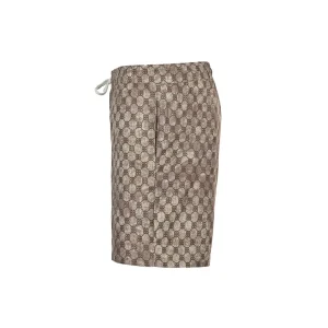 A standout summer essential from BLCG, these beige brown shorts are covered in an all-over BB monogram print, creating a luxe yet playful geometric texture. Designed with a relaxed fit and elastic waistband, they feature a contrasting white drawstring for a clean finish. Perfect for elevated off-duty styling or poolside flex, these shorts bring signature BLCG flair to everyday comfort.