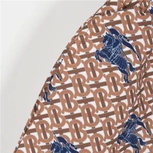 Make a bold statement poolside or street-side with these Burberry shorts featuring an all-over monogram pattern in rich brown tones, overlaid with iconic blue knight motifs. The design is finished with a navy drawstring waistband for an adjustable fit and casual ease. Lightweight and breathable, these shorts combine Burberry’s heritage symbols with modern summer energy.