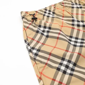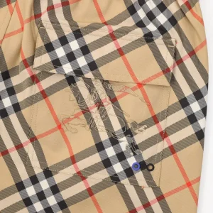 Channeling classic heritage with a modern edge, these Burberry shorts feature the iconic archive check pattern reimagined in a diagonal layout. The design includes a knight motif embroidered subtly over the back pocket for a distinctive brand touch. Lightweight and fast-drying, they’re finished with an elastic waistband and side adjusters, ideal for both city strolls and coastal escapes.