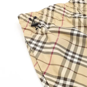 Channeling classic heritage with a modern edge, these Burberry shorts feature the iconic archive check pattern reimagined in a diagonal layout. The design includes a knight motif embroidered subtly over the back pocket for a distinctive brand touch. Lightweight and fast-drying, they’re finished with an elastic waistband and side adjusters, ideal for both city strolls and coastal escapes.