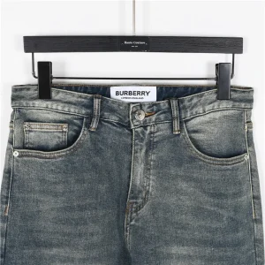 Crafted in a faded indigo tone, these Burberry jeans deliver a lived-in look with strategic whiskering and natural wash effects throughout the legs. The standout feature is the bold embroidered laurel and equestrian emblem on the back pocket, nodding to the brand’s heritage. Cut in a straight-leg silhouette, this pair effortlessly blends luxury detailing with everyday denim wear.
