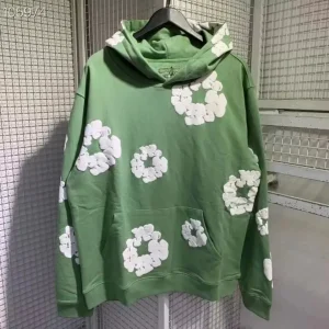 – Details: Features a bold, all-over puff-printed cotton wreath graphic, classic hood, front kangaroo pocket, and ribbed cuffs and hem.