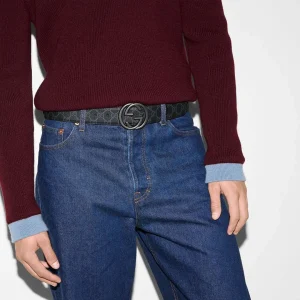 GG belt with Interlocking G buckle in black Supreme canvas