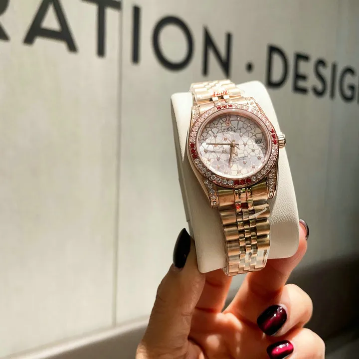 Name: Rolex Datejust 31 278285RBR Everose Gold Deep Red Diamond 5-Leaf Custom
