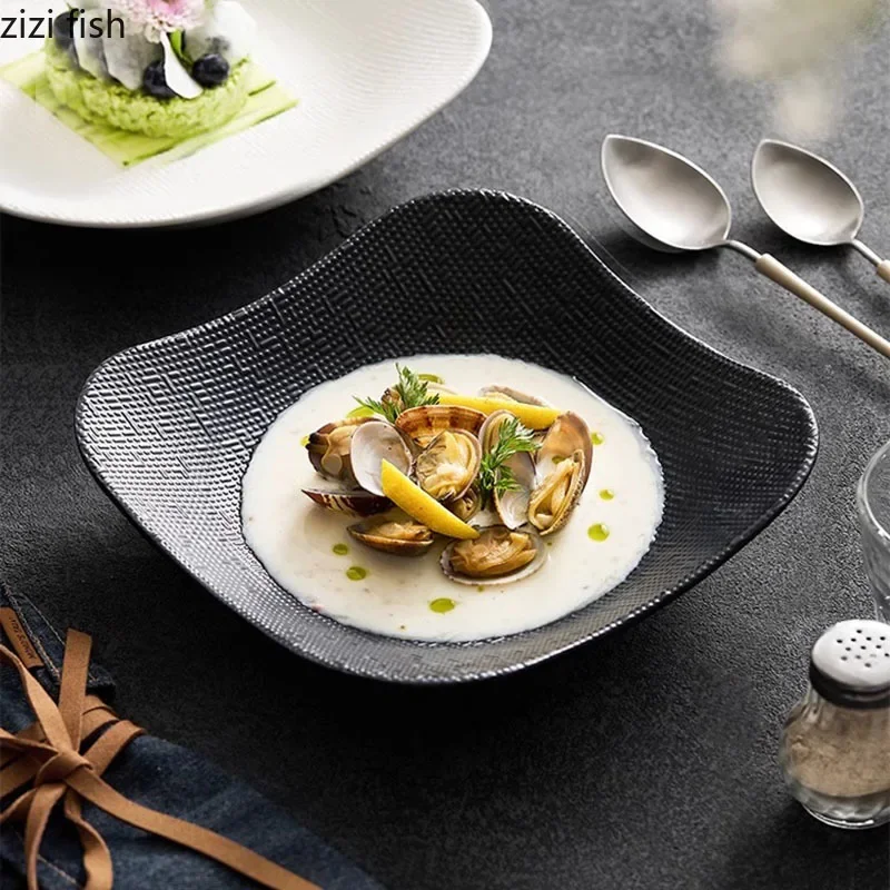 - Elevate your dining experience with our stylish and versatile Solid Color Star Flow Texture Ceramic Dinner Plate