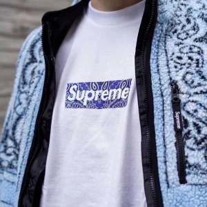 SUP Box Logo Zebra Blue Print T-Shirt in White – 515 – spm0000515